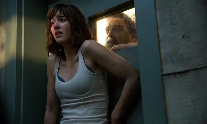 Раніше 10 Кловеріфельд пров потрапив до рук продюсерської компанії Abram’s Bad Robot, він почав своє існування як малобюджетний сценарій під назвою Підвалпро жінку, яка прокидається в бункері, яким володіє і керує теоретик змови на ім’я Говард. Тут Джон Гудман грає Говарда, і він представлений пострілом під низьким кутом, який дозволяє його значному обхвату блокувати двері та будь-яку надію на втечу. Говард стверджує, що врятував їй життя, а її товариш по бункеру, чарівний, хоч і трохи тупий Еммет (Джон Галлахер-молодший), розповідає про його історію. Початкова передумова Підвал була побудована навколо основної ідеї внутрішнього ворога, що є поширеною темою в епоху міжнародного тероризму. Ті самі теми все ще можна побачити тут, але це не спойлер, якщо припустити, що ті, хто знайомий з Абрамом Cloverfield можливо, зможе зрозуміти, який тип терору чекає за непроникними сталевими дверима бункера.